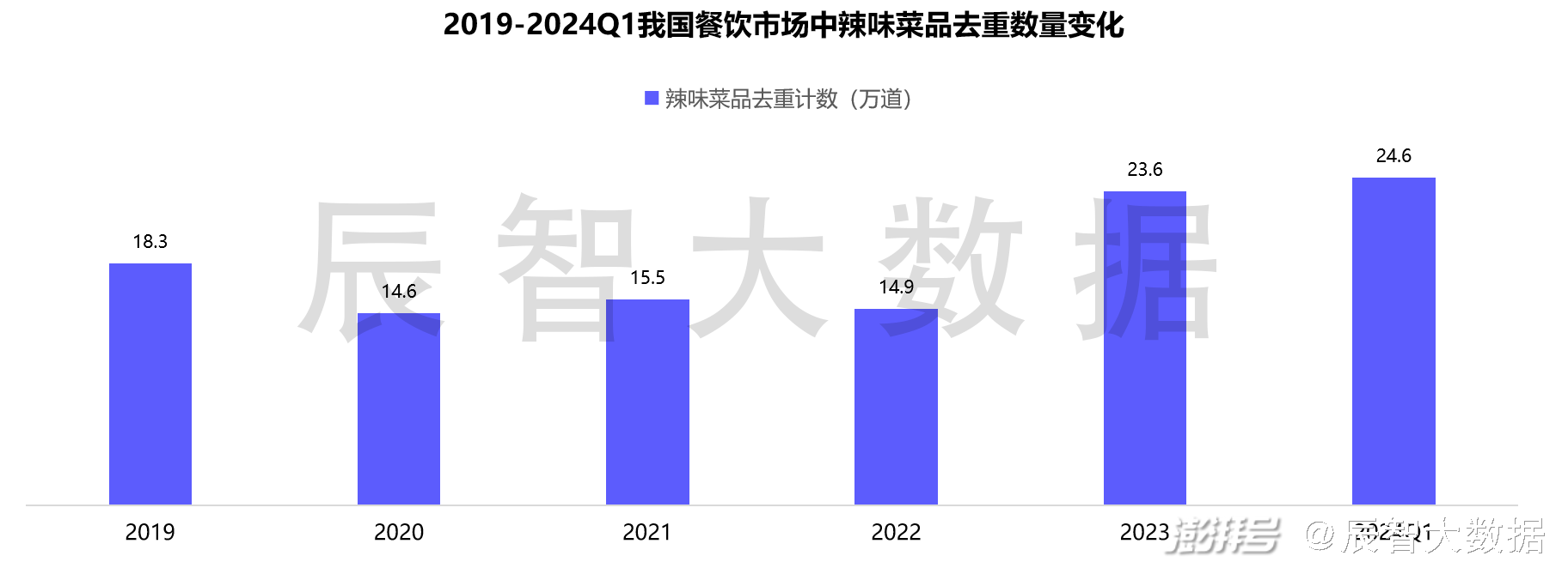 在辰智大数据监测样本中,2019年我国餐饮市场中共有18.3万道辣味菜品,随着全民健康风潮兴起,辣味菜品数量明显减少,但2023年后辣味菜品数量激增,2024Q1已经增至24.6万道,说明消费者对辣味的喜好并未改变,辣味菜品仍具有广阔的发展前景。