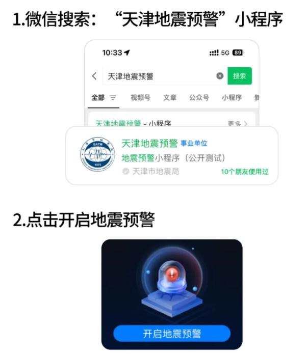 日前,“天津地震预警”微信小程序正式上线公测,当关注地预估烈度大于等于2度时将收到预警信息。