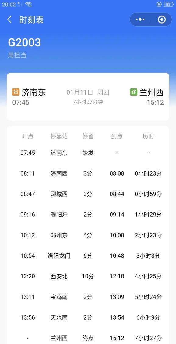 济南东-兰州西G2003,濮阳可直达西安北、宝鸡南、天水南、兰州西等地。