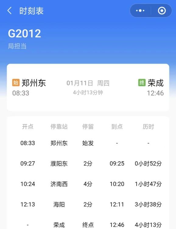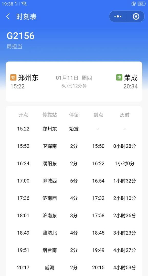 郑州东-荣成G2156,濮阳可直达潍坊北、烟台南、威海等地。