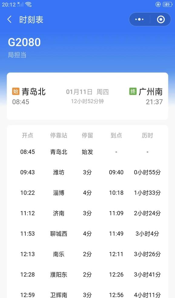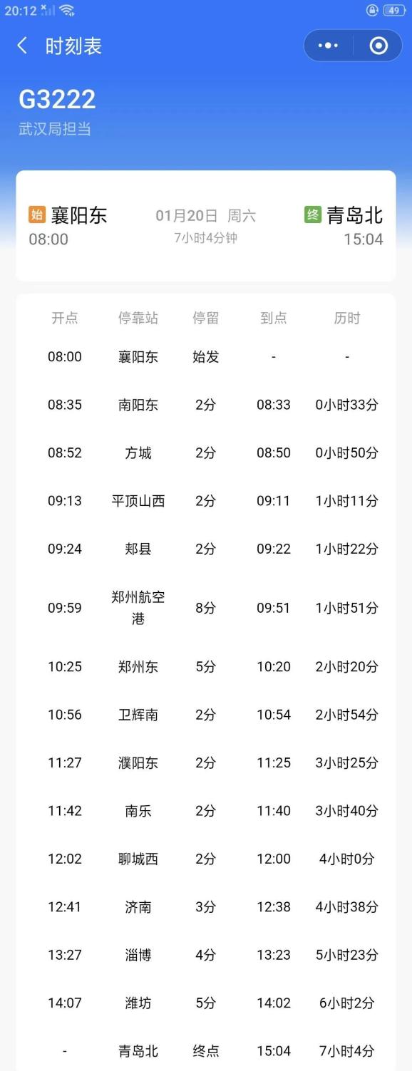 襄阳东-青岛北G3222,濮阳可直达淄博、潍坊、青岛北。