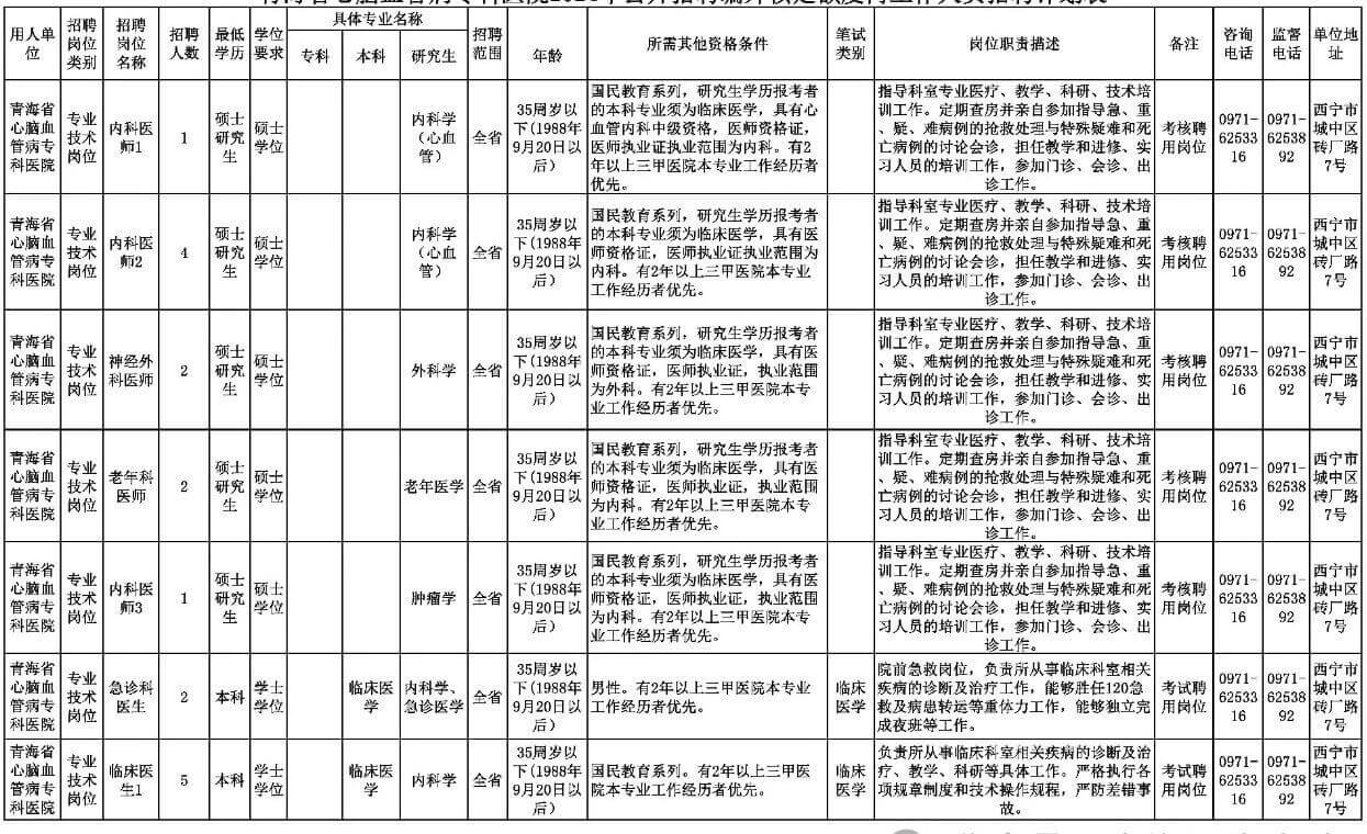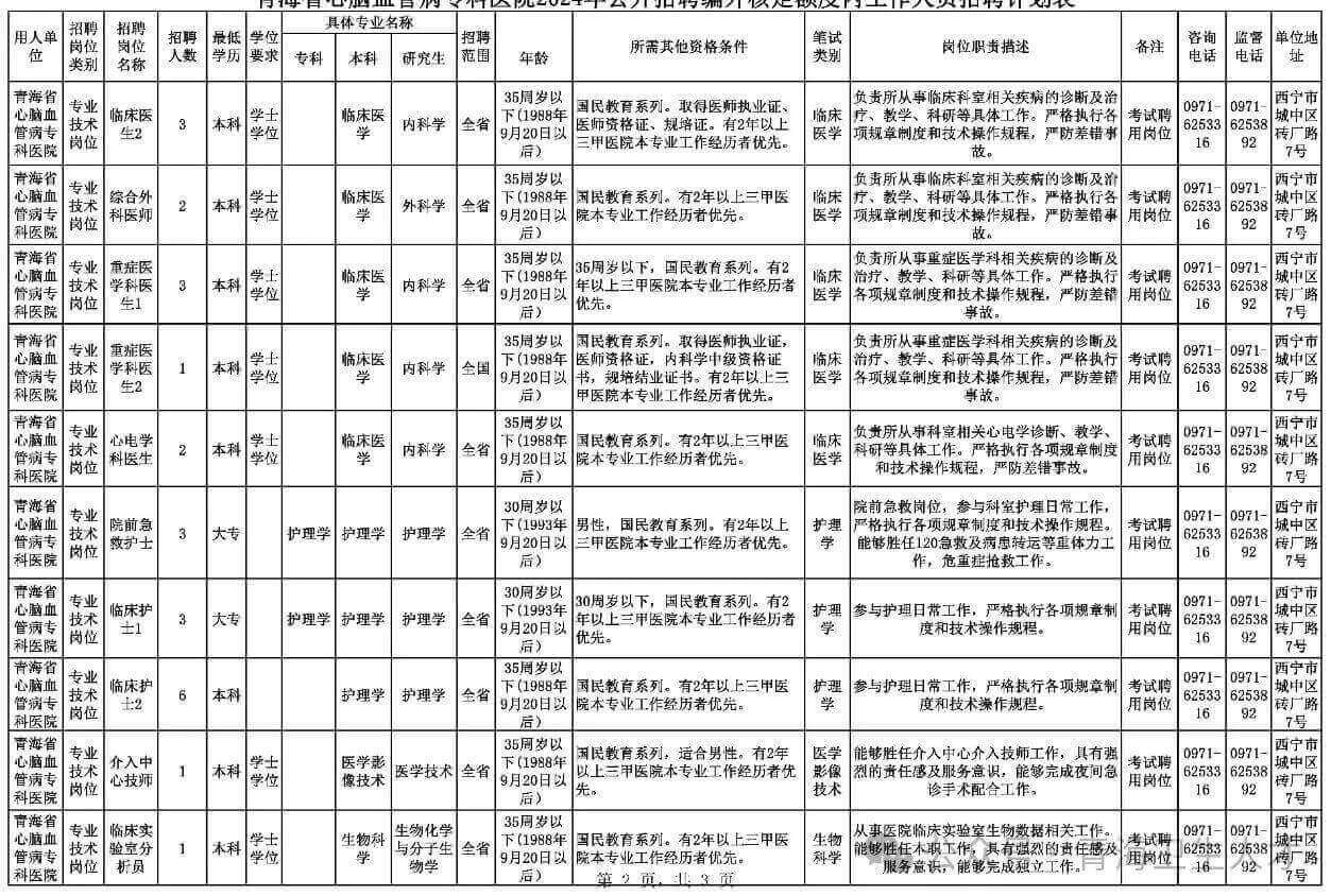 原标题:青海省心脑血管病专科医院2024年公开招聘编制外核定额度内工作人员招聘公告
