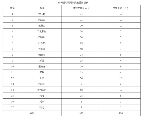 鲁网6月25日讯(记者 韩黟瞳)近日,记者从济南市市中区政府工作网站上了解到,根据市中区《关于以高质量党建引领基层网格化治理的实施意见》(市中办发〔2020〕1号)的安排和要求,为选优配强网格力量,拟公开选聘一批专职网格员,据了解本次选聘网格员人数为490人,其中定向引进全日制本科及以上学历人才120(不限户籍)。现将有关事项公告如下。