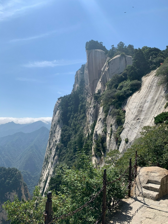 这条路线是华山西峰索道上,西峰索道下,即西上西下,整条线路用时相对较短,4小时左右,也较省体力,对于老人与带孩子的游客比较友好。