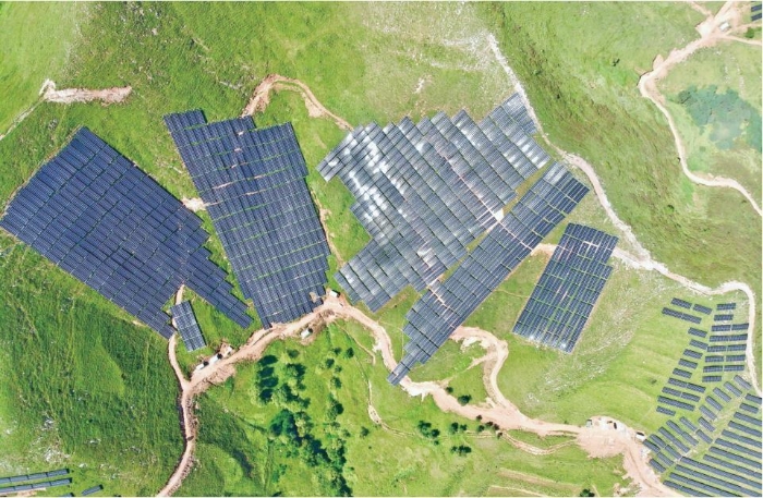 在宝鸡市陈仓区贾村镇的山头,成排的光伏板将太阳能源源不断转化为电能。