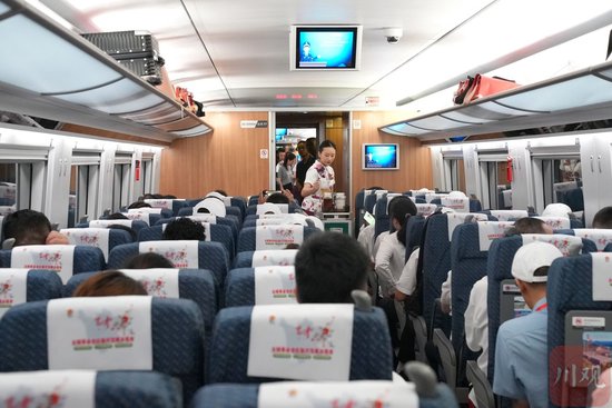 当天早上,巴中东站站前广场上十分热闹,很多不坐车的当地群众也闻讯赶来。“以前我们到成都,不管坐火车还是开汽车,都要四、五个小时。”赵志鑫难掩兴奋地说,现在通了高铁,到成都最快2小时16分,比以前足足省时一半,“快多了,让我们能更快地融入大都市。”
