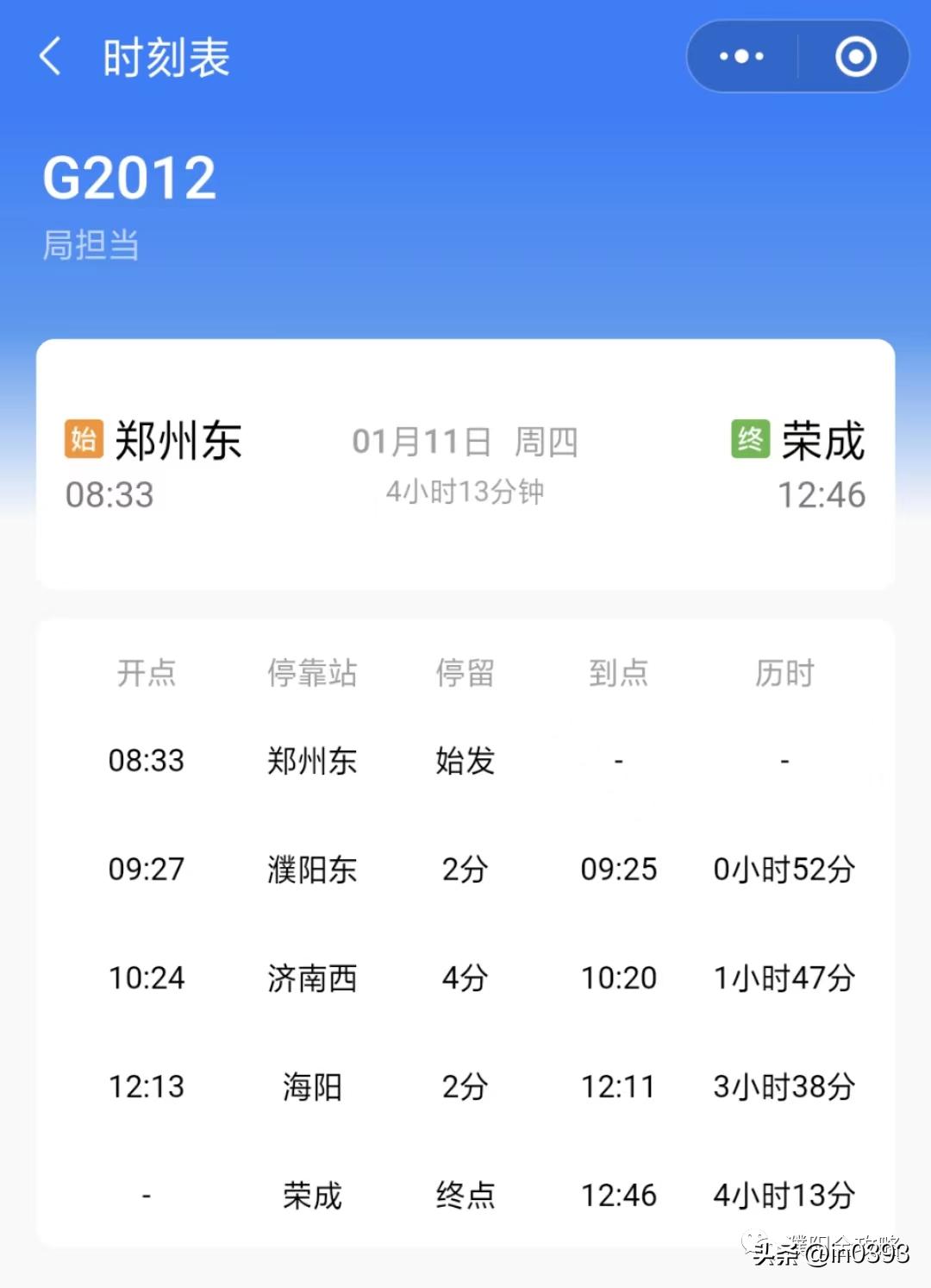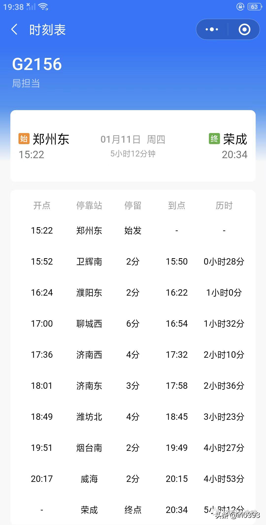 郑州东-荣成G2156,濮阳可直达潍坊北、烟台南、威海等地