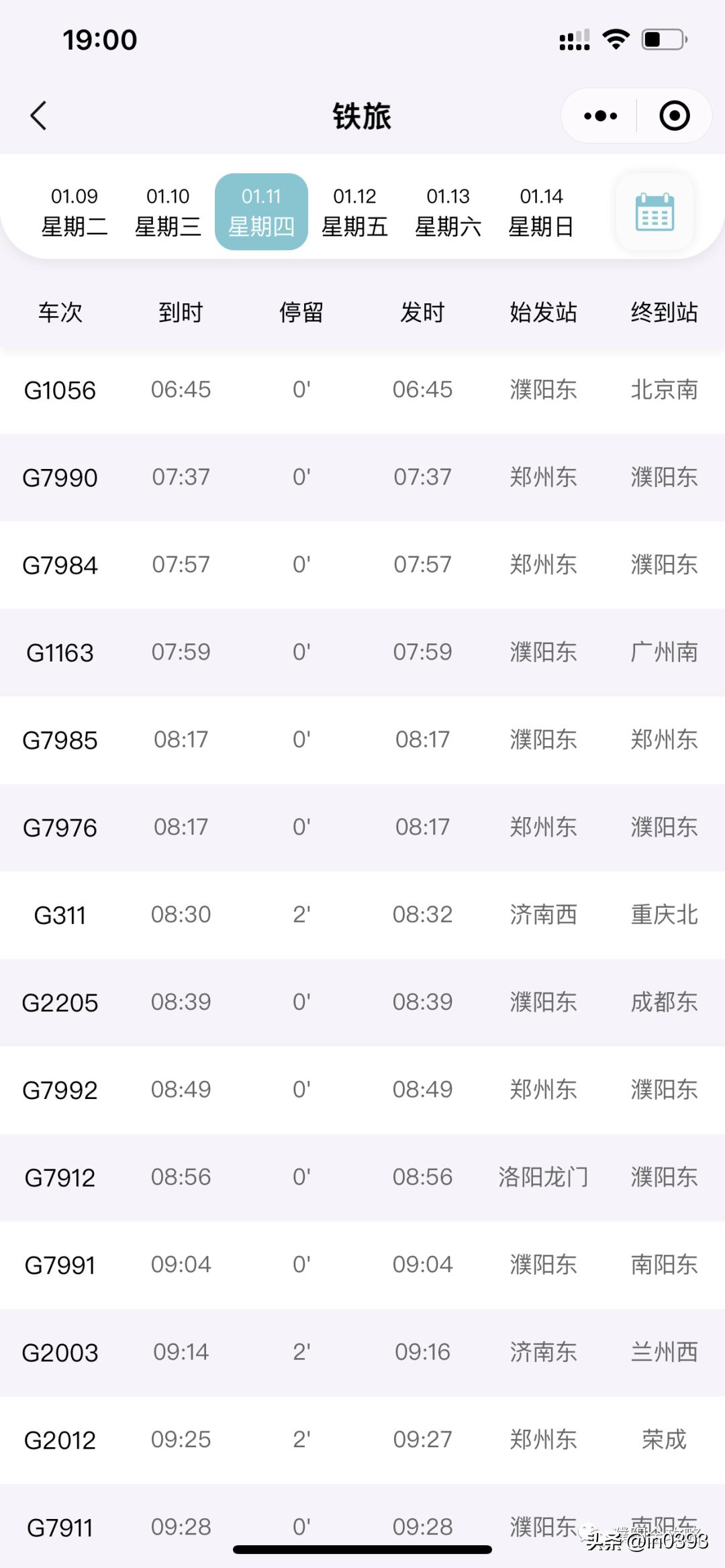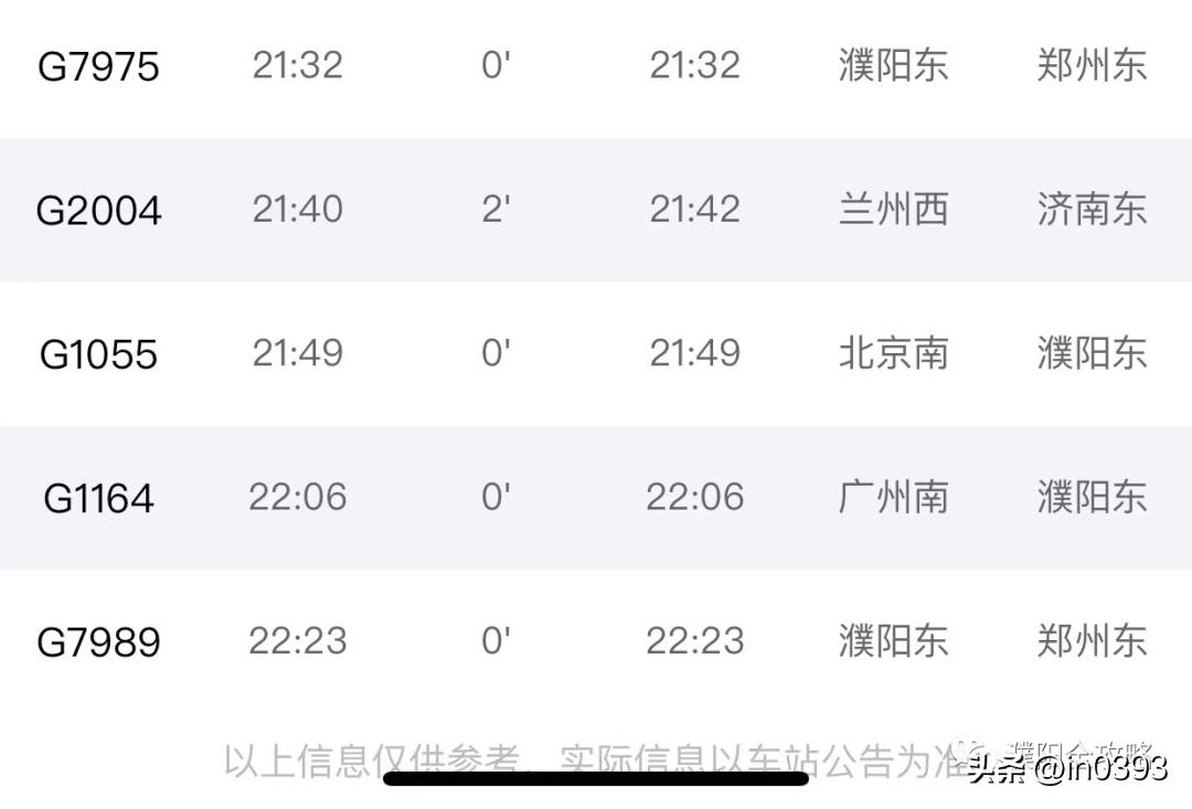以下为濮阳东站车次表。