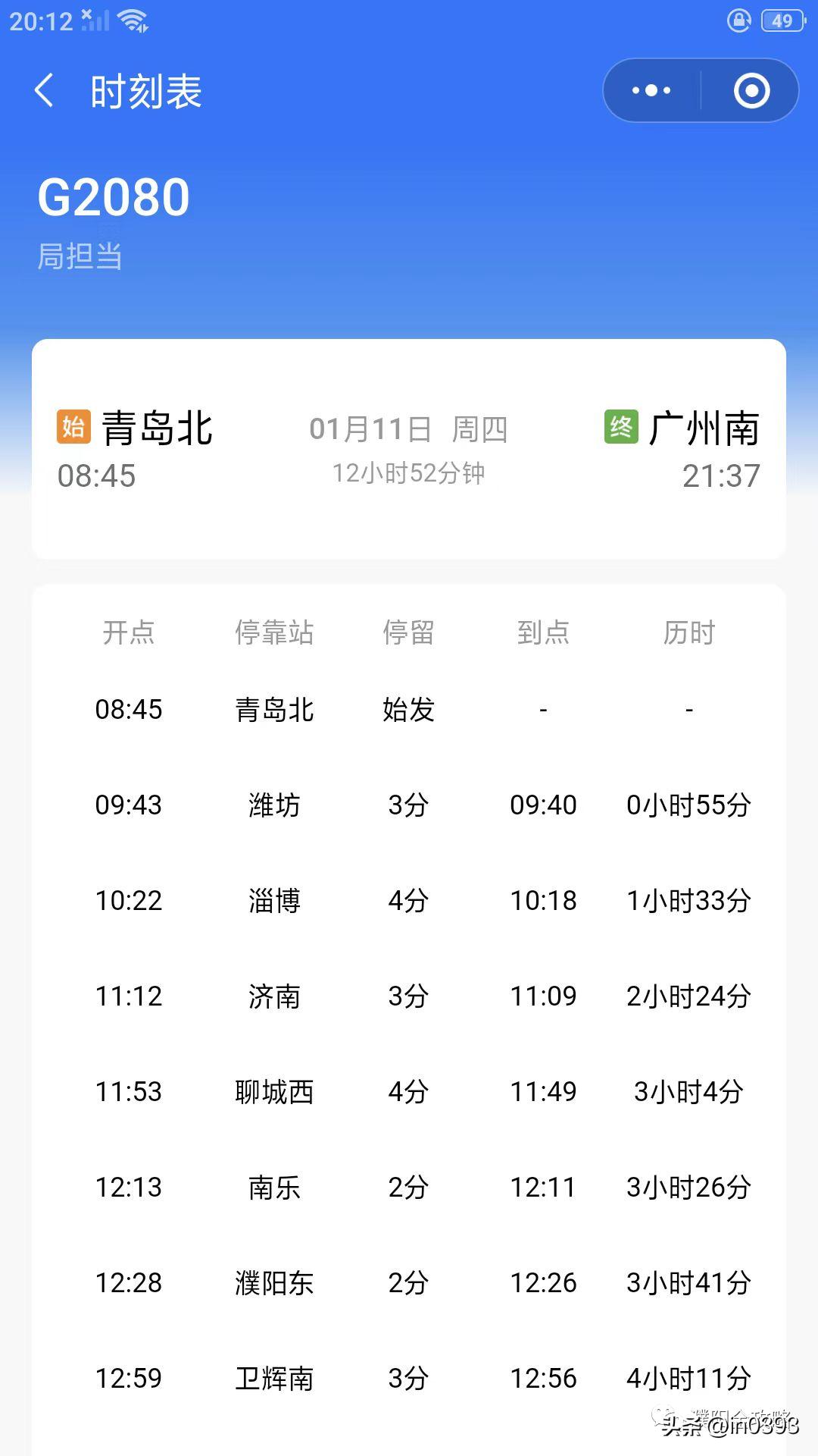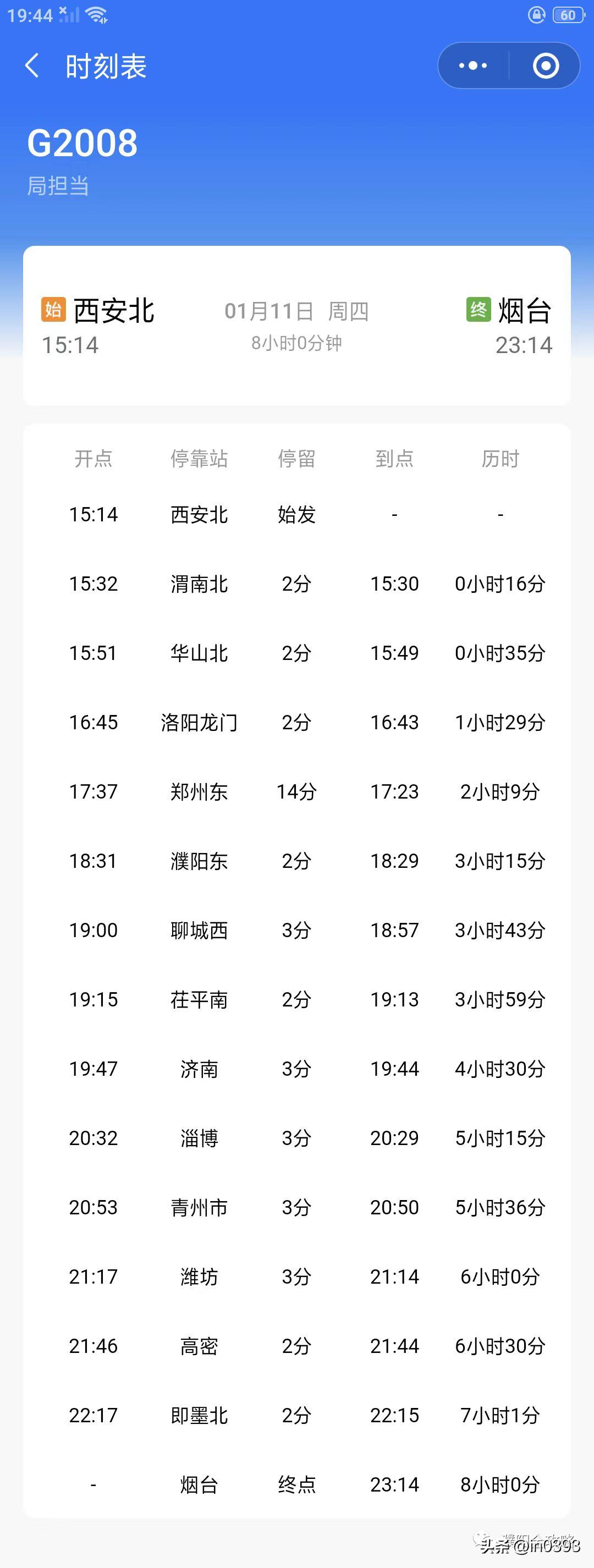 西安北-烟台G2008,濮阳可直达淄博、青州、潍坊、高密、即墨北、烟台等