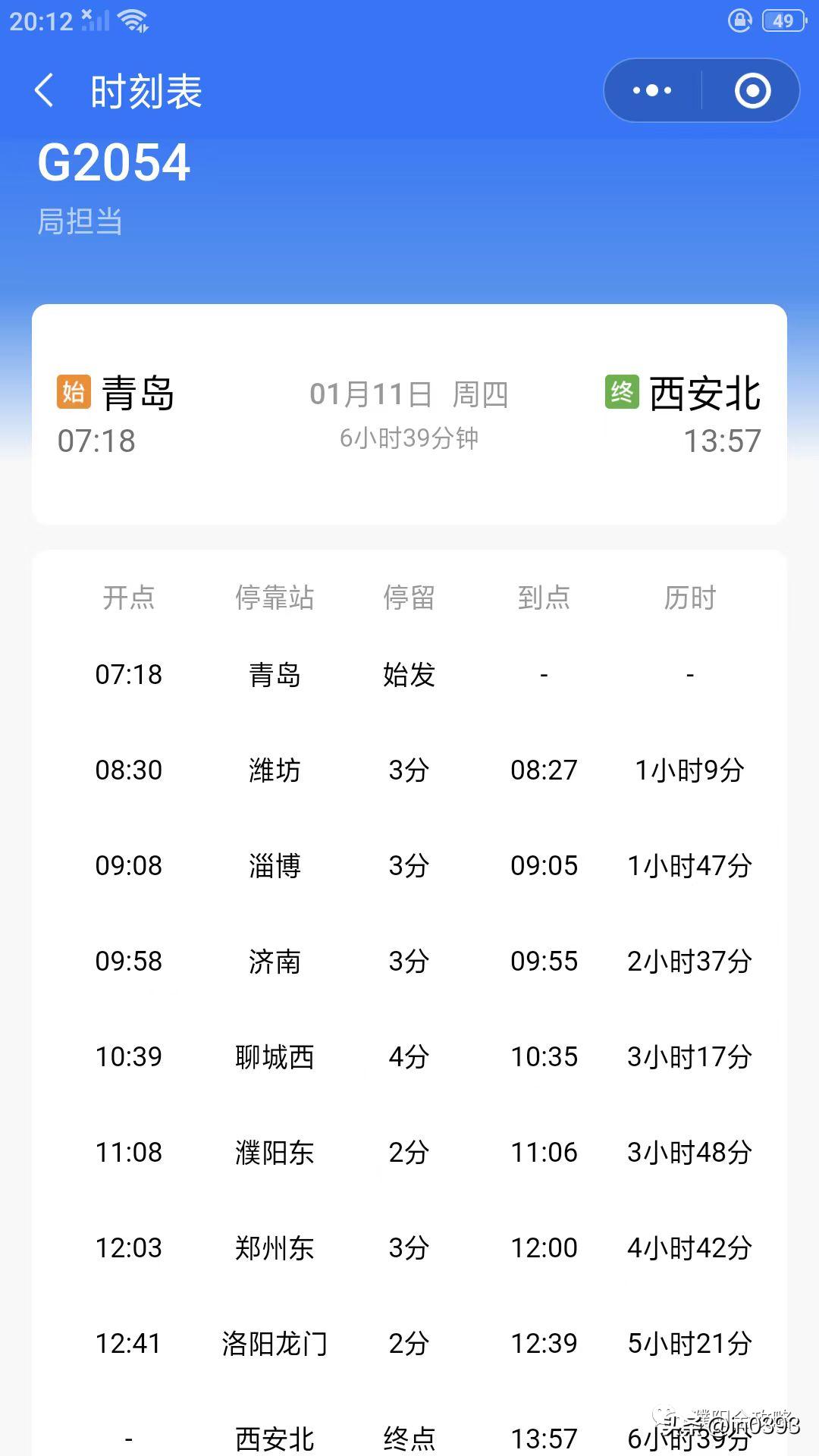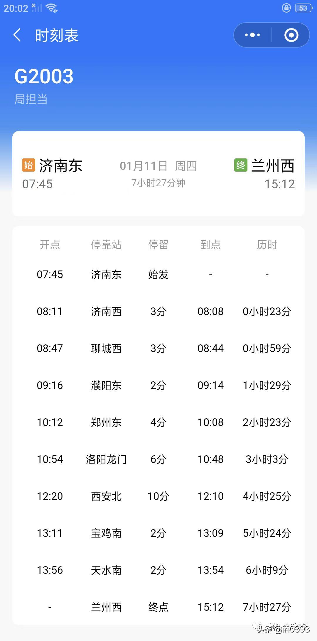 济南东-兰州西G2003,濮阳可直达西安北、宝鸡南、天水南、兰州西等地