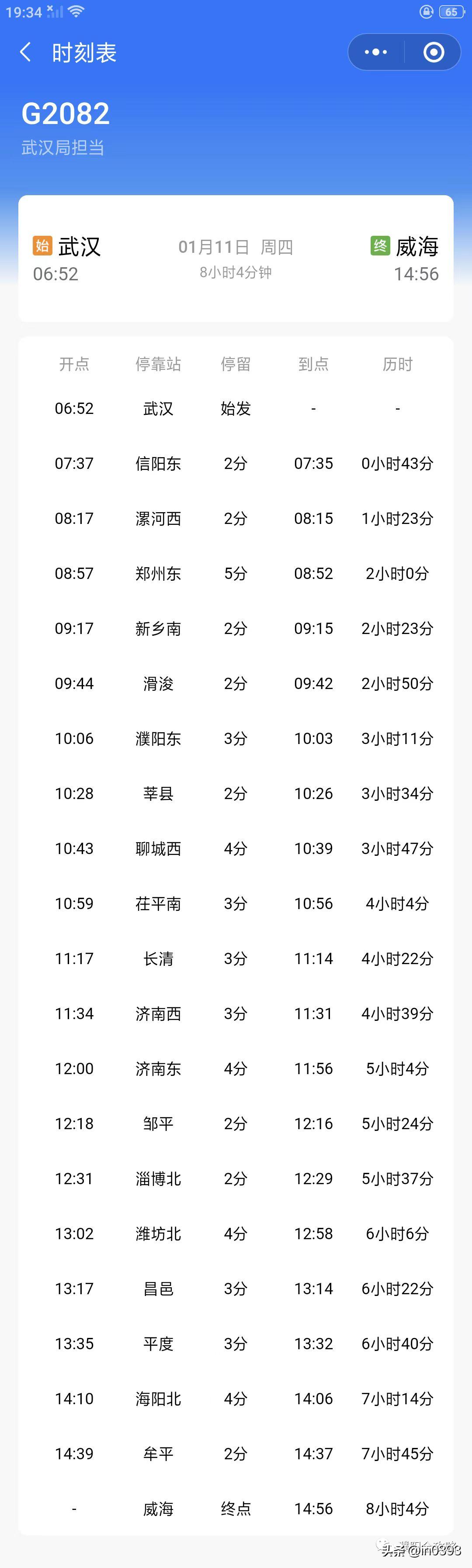 武汉-威海G2082,濮阳可直达淄博北、潍坊北、威海等城市。