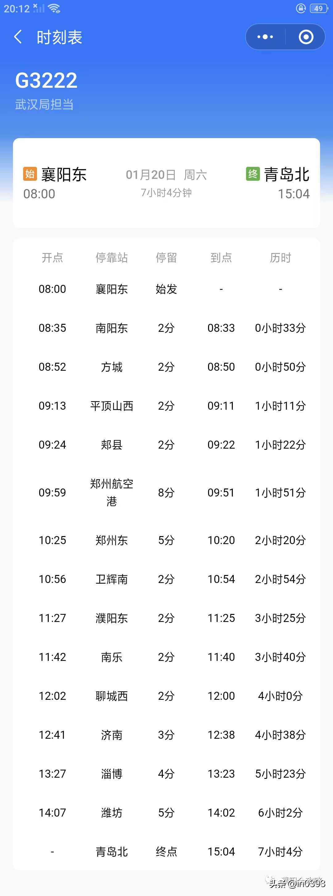 襄阳东-青岛北G3222,濮阳可直达淄博、潍坊、青岛北