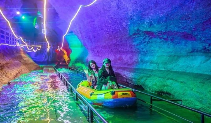 漫步在18℃的地下大峡谷,体验惊险刺激的暗河漂流,穿过蝴蝶的海洋,乘一叶扁舟赏万千萤火虫熠熠生辉。