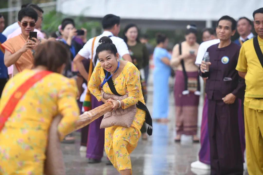10月1日至2日,芒市开展了“运动德宏·和谐边境”2024年轻体育文化活动,以独特的方式向祖国献礼。在芒市广场上,民族民间体育竞赛进行得如火如荼,扭棍、傣族保龄球、挑贡米、抱柚子和陀螺体验活动等比赛项目观赏性极高,深受群众喜爱。在扭棍比赛中,随着裁判员一声令下,选手们分别攥住杆的两端展开激烈角逐。攻方先扭,守方握棍,胜利与失败仅在毫厘之间,充分展现了选手们的力量与技巧。傣族保龄球比赛精彩绝伦,选手们需要完成滚击、踢击、推击3个动作,不时出现的有趣场面引来观众的阵阵欢笑。