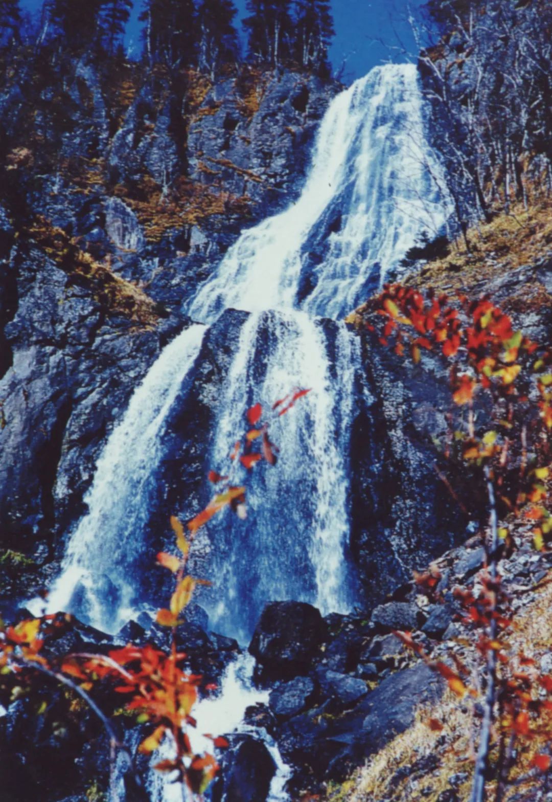 68米高的长白瀑布,山大景区陡,水势湍急,水流冲向谷地,溅起几丈高的飞浪,水气弥漫如雾,相当壮观。