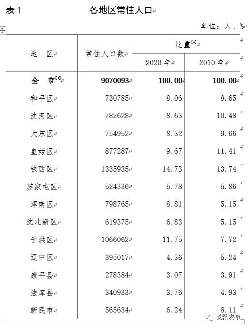 沈阳市第七次全国人口普查公报[1]