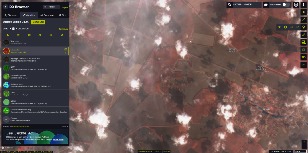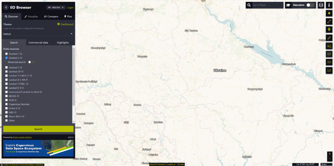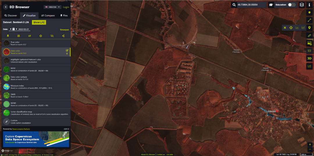 此处,我们将结合俄乌冲突中的案例,向大家演示如何使用EO Browser获取实时的卫星图像。