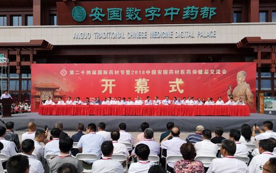 安国药业兴旺发达,是特色优势主导产业。作为中药文化的发祥地之一和全国最大的中药材集散地、出口基地,药业历史源于汉、起于宋、兴于明、盛于清,迄今已逾千年,有“举步可得天下药”之称,素以“药都”“天下第一药市”驰名中外,享有“草到安国方成药,药经祁州始生香”之美誉。安国是国务院命名的“中国中药材之乡”、全国首批中药材种植示范县、国家中药材流通追溯体系试点、国家中药材种子种苗繁育基地、河北省首批中药材“出口基地县”、河北省级物流产业聚集区。安国药业经济涵盖了一二三产业,已形成了从种植、科研、加工、生产、经销到使用的完整产业链条。中药材种植面积常年保持在15万亩左右,品种300多个,尤以祁菊花、祁山药、祁紫菀、祁沙参、祁薏米、祁芥穗、祁白芷、祁瓜蒌品质纯正,被誉为“八大祁药”,其中祁菊花和祁山药通过了国家地理标志认证;北沙参占全国产量的80%,白芷、丹参占10%以上,齐村被誉为全国甘草加工第一村。全市涉药人员10万余人,其中专业技术人才3200多人。绿色循环工业园区规划占地24平方公里,入驻企业112家,2018年园区主营业务收入完成540亿元,园区全省综合排名四年间上升117个位次,2018年排名第14位,被工信部评为河北省唯一的国家级绿色制造园区。拥有GMP认证企业108家,GSP认证企业65家,有生产批号的中成药品种510个,中药饮片年生产能力近10万吨;中药材市场交易额达310亿元,中药材专业市场拥有座商门店1100多家,经营品种3000余个,日客流量3万余人,日吞吐中药材1000多吨,经营辐射遍及全国各地和东南亚、日韩及欧美等40多个国家和地区,安国药市历来被称为中药材交易价格晴雨表。