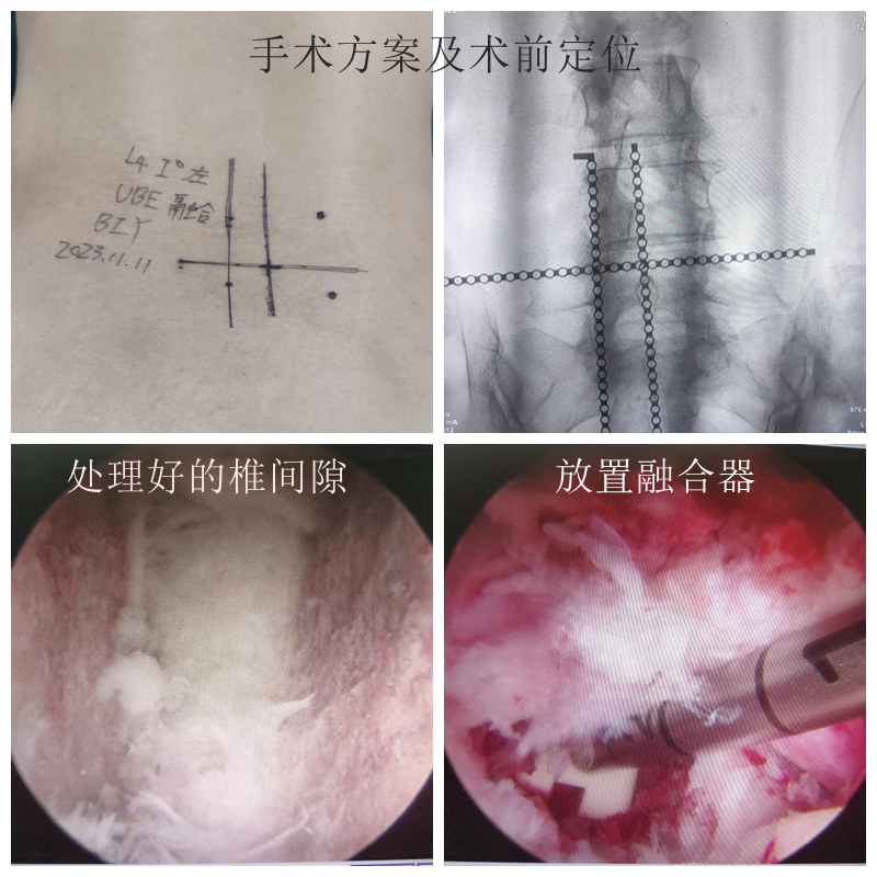 经过充分的术前准备,在王小明主任医师的指导下,由冯万立副主任医师带领治疗小组和手术室医护人员密切配合,成功为患者进行了UBE下腰椎减压复位固定融合手术,同时,手术中患者的神经周围的瘢痕粘连得到安全松解。