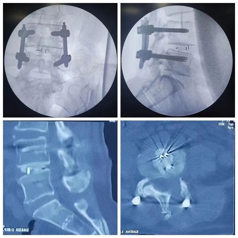 术后第2天查房时,吴女士疼痛评分仅有1-2分,原来左下肢的麻木症状也消失了。术后复查X线片提示患者的腰椎滑脱完全复位,融合器位置良好。术后复查CT提示植骨量充足,椎间处理范围堪比开刀手术。术后5天患者即可轻松下地行走活动,解除困扰其多年病痛的同时也避免了开放手术的创伤和痛苦。术后1周患者顺利出院,可以自己坐起、行走活动、上厕所,已基本达到了生活自理。
