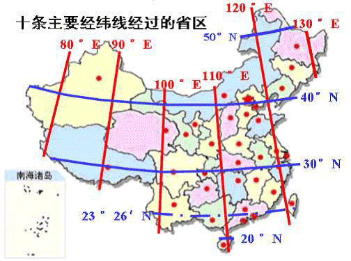 补充,方便直观理解,看看中国境内的重要经纬线:
