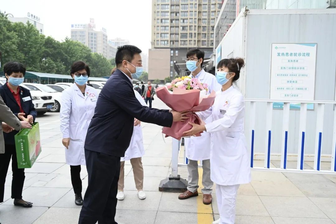 5月12日,在国际护士节到来之际,宝鸡市卫健委党组书记、主任李宏发和班子成员先后前往委直委管医院看望慰问长期奋战在一线的护理工作者,并通过他们向全市广大护理工作者致以诚挚的问候和节日的祝福,对他们的辛勤工作、无私奉献表示感谢,勉励广大护理工作者发扬优良作风,提高业务水平,以优质服务增强群众获得感。