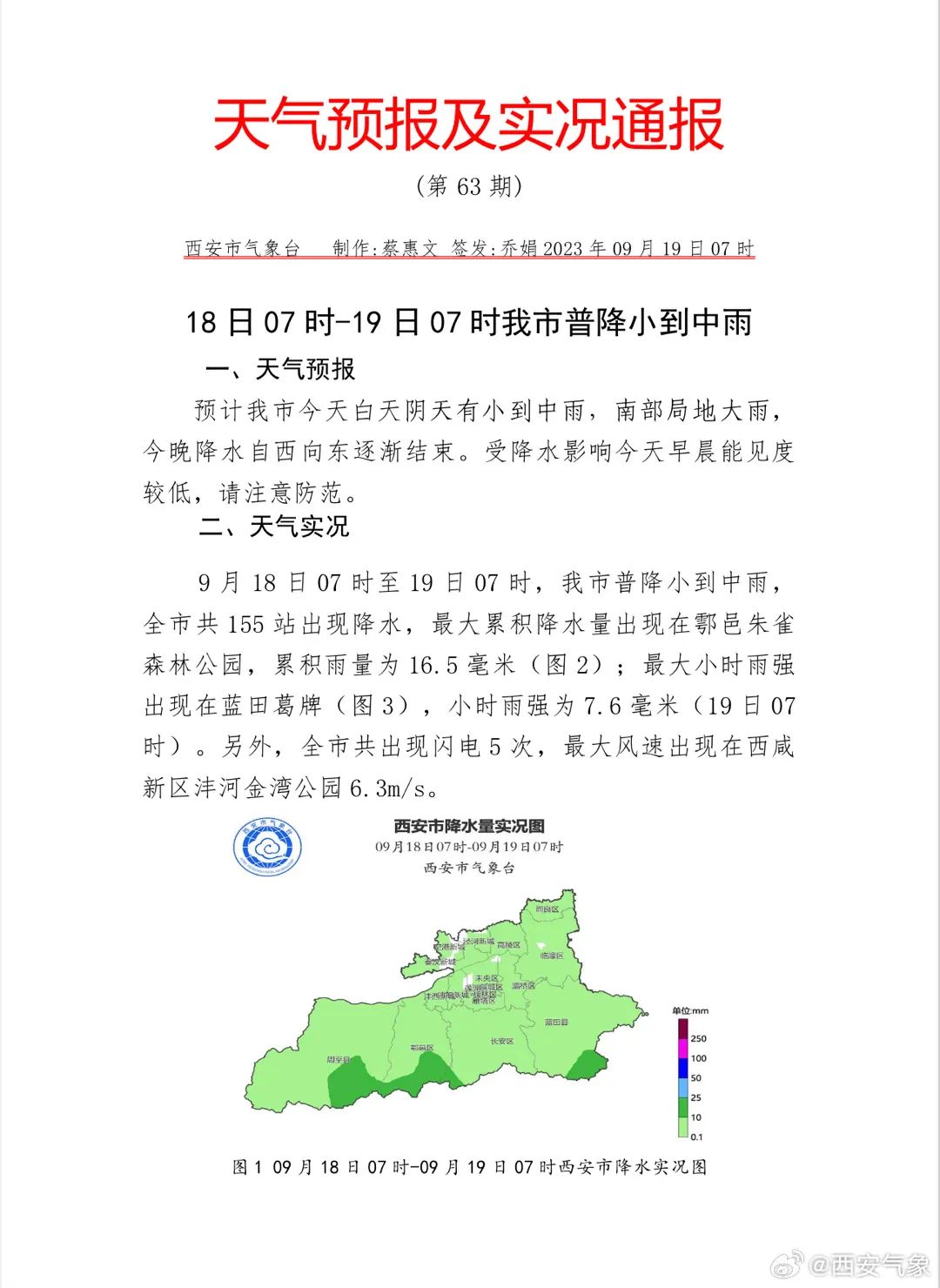 预计未来0-3小时,西安全市范围有短时暴雨(小时最大雨强10-20毫米),雨量分布不均匀,提请相关部门、相关区县做好城乡积涝、山洪、中小河流洪水及滑坡、泥石流、崩塌等次生灾害防范工作。
