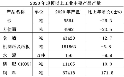 全年农林牧渔业及农林牧渔服务业完成总产值(现价)49.16亿元,同比增长3.9%。其中:农业产值34.72亿元,同比增长4.8%;林业产值0.96亿元,同比增长3.2%;牧业产值10.83亿元,同比下降0.4%;渔业产值0.18亿元,同比下降7.3%;农林牧渔服务业产值2.47亿元,同比增长9.7%。全年实现农林牧渔业增加值28.49亿元,同比增长3.8%。年末全县共有省级以上农业产业化龙头企业9户,与上年持平。