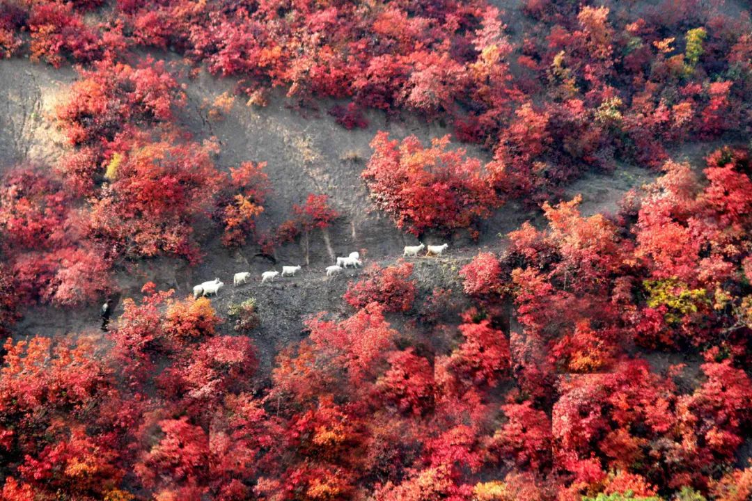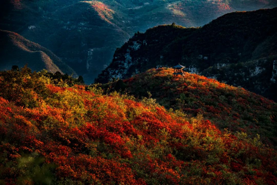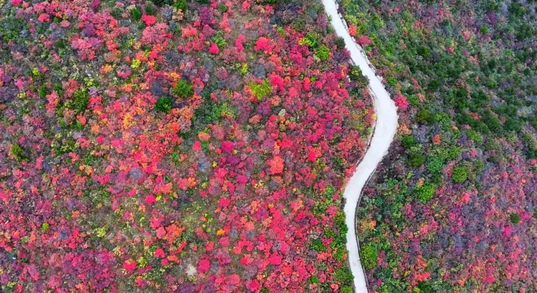 所谓“万山红遍,层林尽染”,在山脊之上,山谷之中,山路之侧,红色树叶渲染,如同打翻的颜料盘,在青龙峡内流淌。