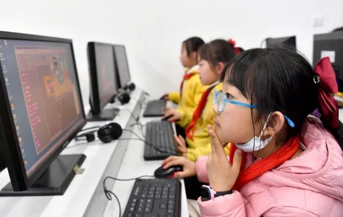 宝鸡市三迪小学的学生下午放学后在学校进行编程练习(3月22日摄)。