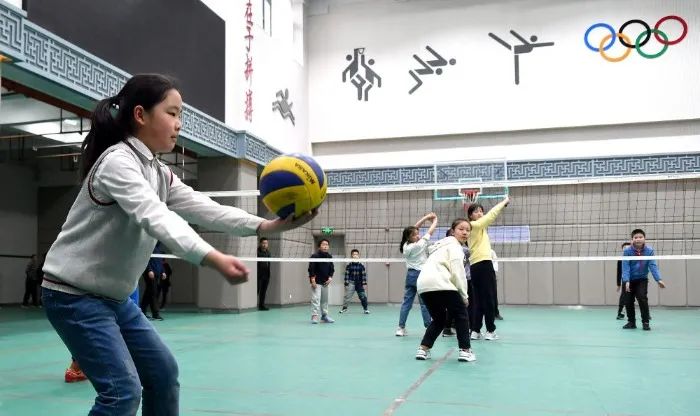 宝鸡市实验小学的学生下午放学后在学校进行排球训练(3月23日摄)。