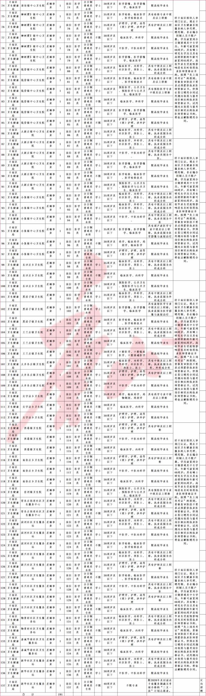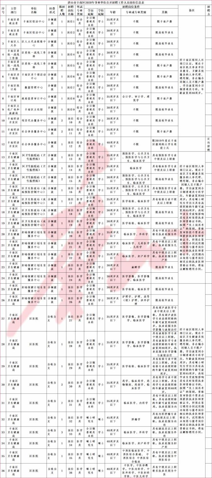 >唐山市丰南区面向社会公开招聘事业编制工作人员191名