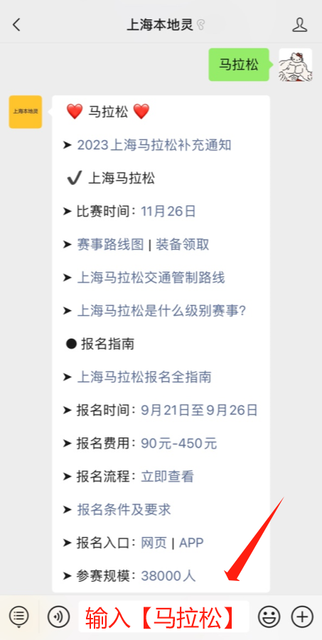 小编提示:微信搜索【上海本地灵】微信公众号,对话框回复【马拉松】即可获取2023年上海马拉松比赛报名时间、比赛时间、报名须知、竞赛规程等信息