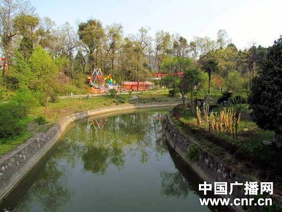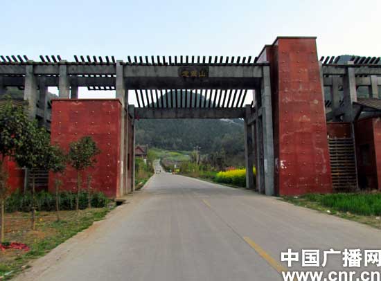 记者驱车驶出武侯墓向东南行驶大约三四公里左右即抵达定军山的山门,如今的定军山是开放式景区,车子进入定军山景区后景色宜人,幽静异常。一片片黄色的油菜花和粉红色的桃花争相斗艳。车子顺盘山公路来到半山腰后是一座名为“军山憩苑”的休闲山庄。山庄脚下有一口诸葛瑾井。