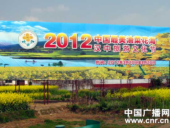 矗立于汉中街头的油菜花节宣传广告版