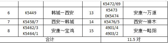 (5)安康-深圳东(节前),宣汉、汉中(安康)-深圳东(节后)K4136/3 K4134/5次1对。
