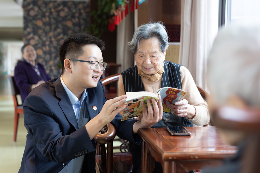 现在,他是杨浦区养老护理人才技能大师工作室负责人,作为院内唯一的高级技师,将所学所获分享给护理团队,带领护理员们向职业化、专业化、综合化发展。