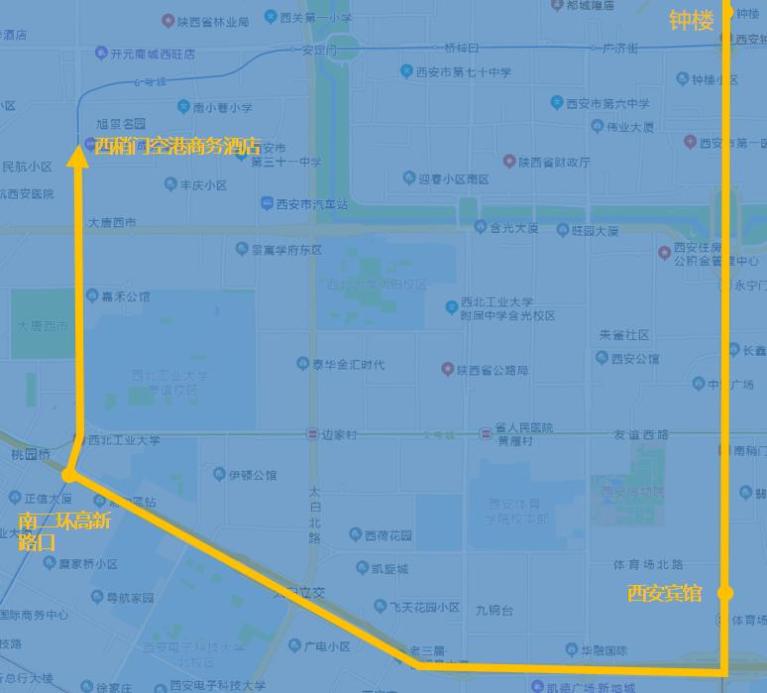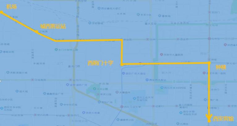 机场—城西客运站—西稍门十字—钟楼—南稍门西安宾馆