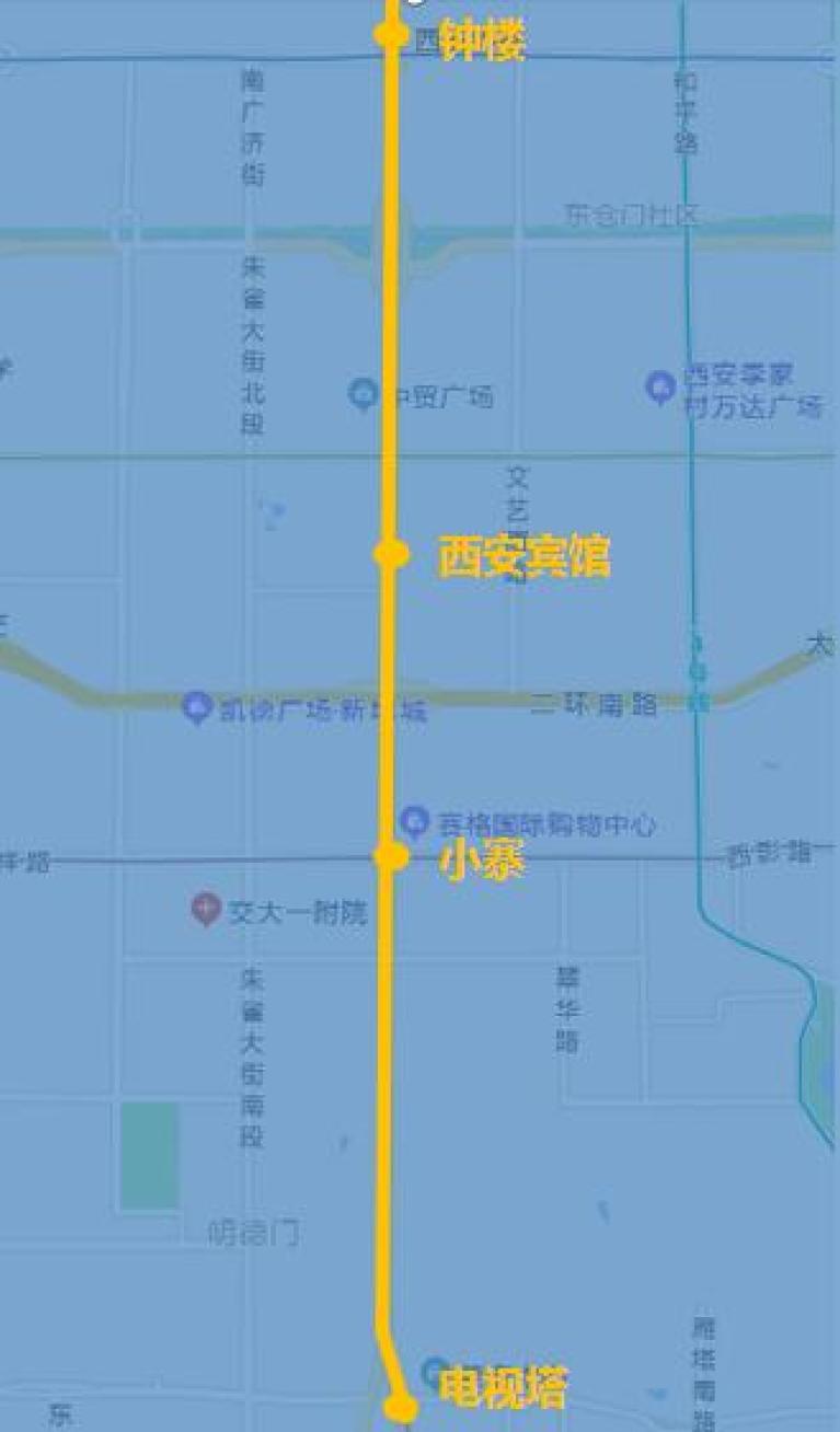 电视塔(运行线路1):西安市雁塔区雁展路电视塔