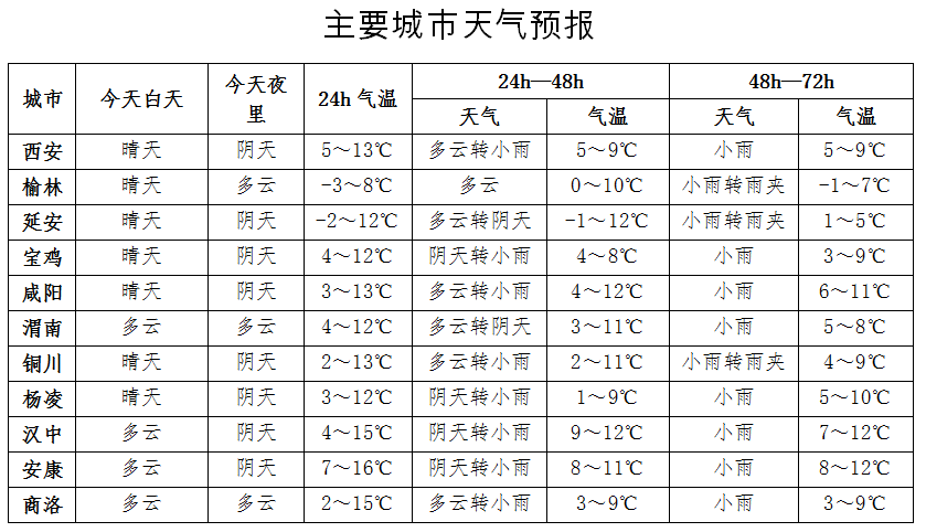 陕西具体天气预报