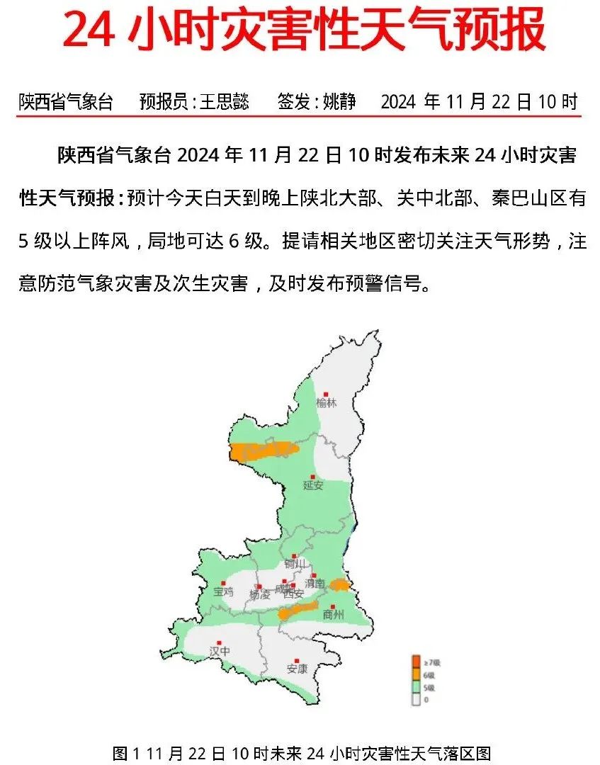 预计今天白天到晚上陕北大部、关中北部、秦巴山区有5级以上阵风,局地可达6级。提请相关地区密切关注天气形势,注意防范气象灾害及次生灾害,及时发布预警信号。