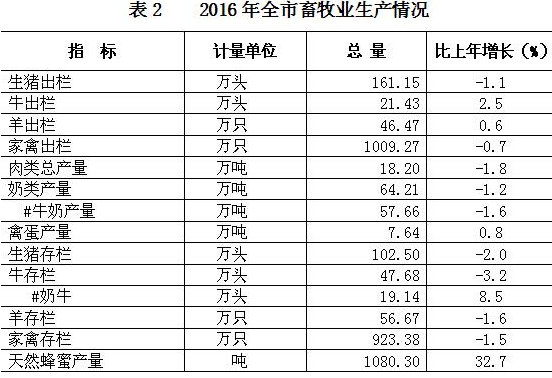全年畜牧业生产形势稳定,主要畜牧产品产量、畜禽存栏保持平稳。
