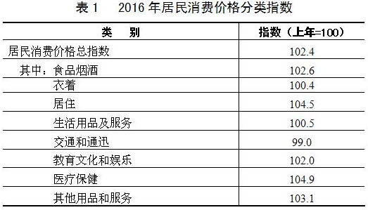 全年居民消费价格比上年上涨2.4%;商品零售价格上涨0.4%;工业生产者出厂价格下降0.9%;工业生产者购进价格下降1.8%;农业生产资料价格与上年持平。