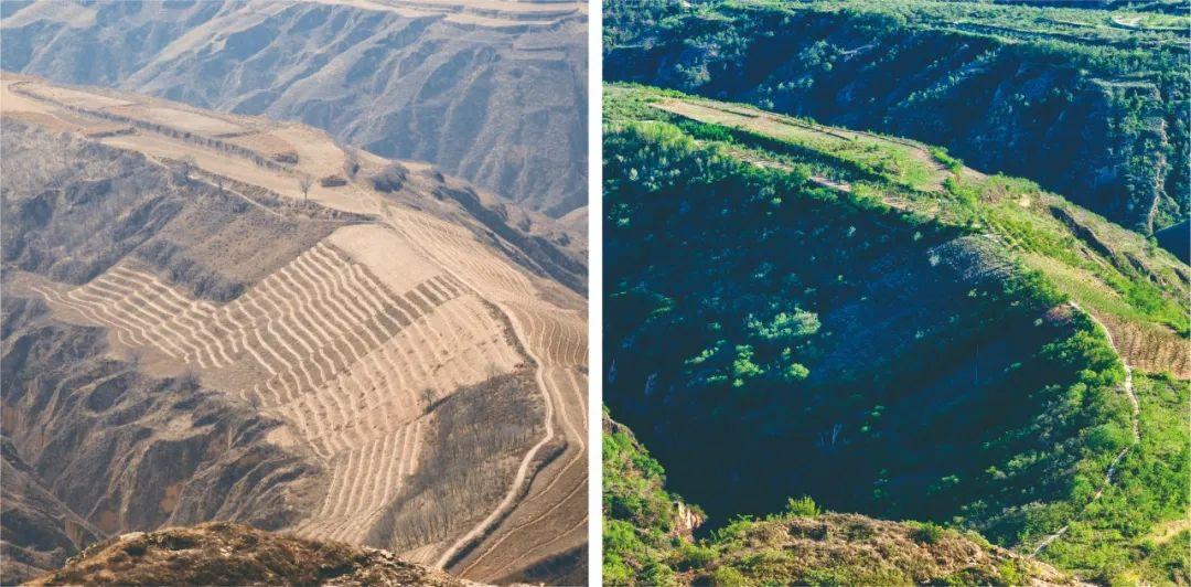 延安市狗头山治理成效对比图 白胜荣/摄