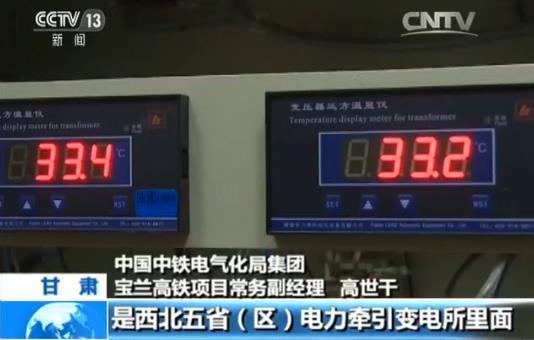 中国中铁电气化局集团宝兰高铁项目常务副经理 高世干:通常内地是采用220千伏这个电压等级为高铁提供电力,宝兰高铁我们采用的是330千伏电压等级,是西北五省(区)电力牵引变电所里面最高的电压等级,提高了供电的可靠性。