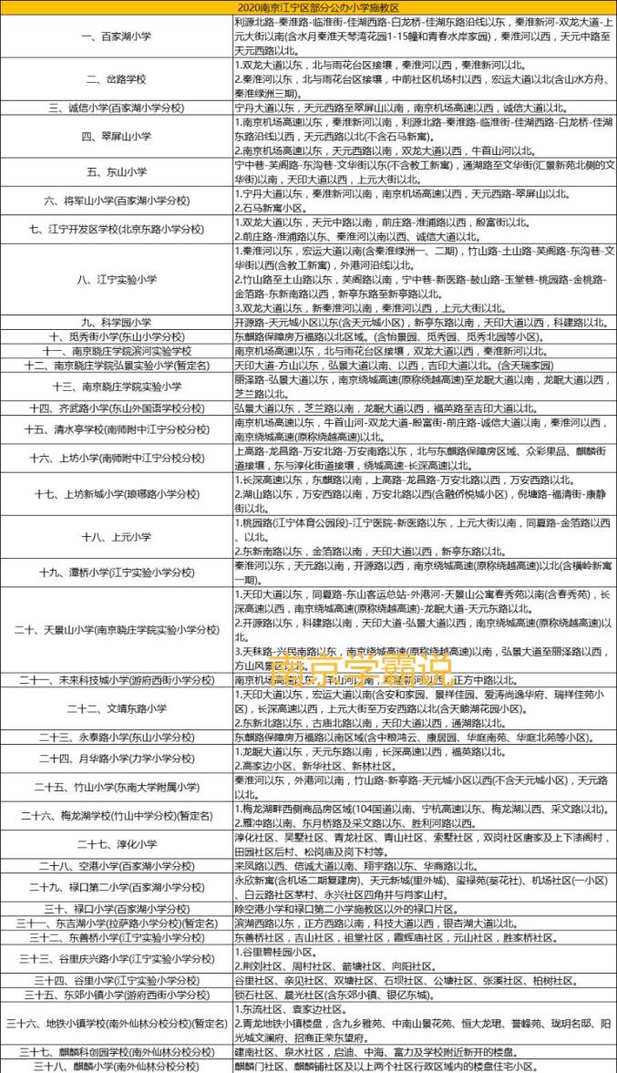 这份2020年南京中小学学区划分的名单,希望能给各位家长或购房者有所参考。
