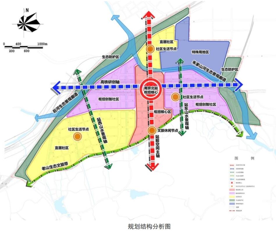 4月11日,《南京江北新区控制性详细规划》NJJBb070规划管理单元批后发布,该单元即南京北站枢纽经济区。南京北站枢纽经济区总面积为12.6平方千米,规划构建“一核、一带、两廊、四轴、四节点、八片区”的空间布局结构。
