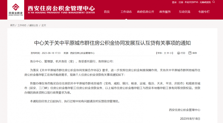 重磅!西安公积金发布新政 11城买房公积金可互认互贷
