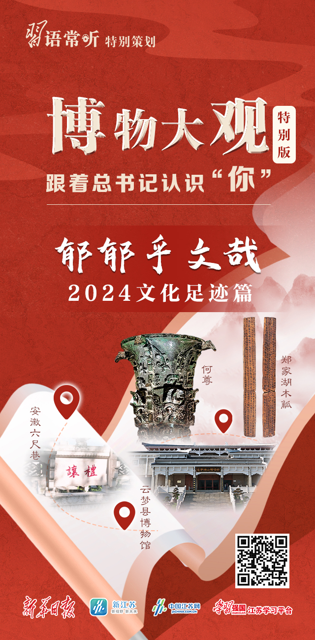 本期内容,让我们跟着习近平总书记2024年的文化足迹,一起走进博物馆,探访文化街区,领略中华大地“郁郁乎文哉”的盛大气象。