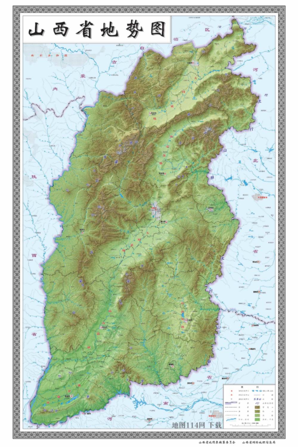 山西省大部地区为山地所占居,山地面积约占全省总面积的72%左右。省境的东西两面为太行山与吕梁山;南北两端为中条山、五台山和恒山。诸山大致由东北向西南方向延伸,是山西地形的骨架。中部地区是一系列狭长的山间盆地,成南北向分布,有汾河、桑干河、漳沱河等流经其中。总的地势北高南低,平面形状略成一平行四边形,因其比东邻的华北大平原为高,表面仍保持有古准平原面的特征,并且多被黄土所掩盖,故有山西黄土高原之称。是我国著名黄土高原的组成部分。